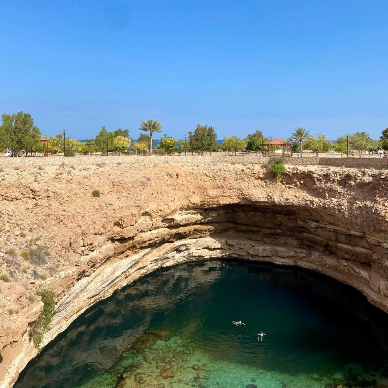 Discover Oman’s natural beauty on a day tour to Wadi Shab and Bimmah Sinkhole, where you’ll hike through a stunning wadi, swim in clear pools, and visit a unique turquoise crater by the sea.